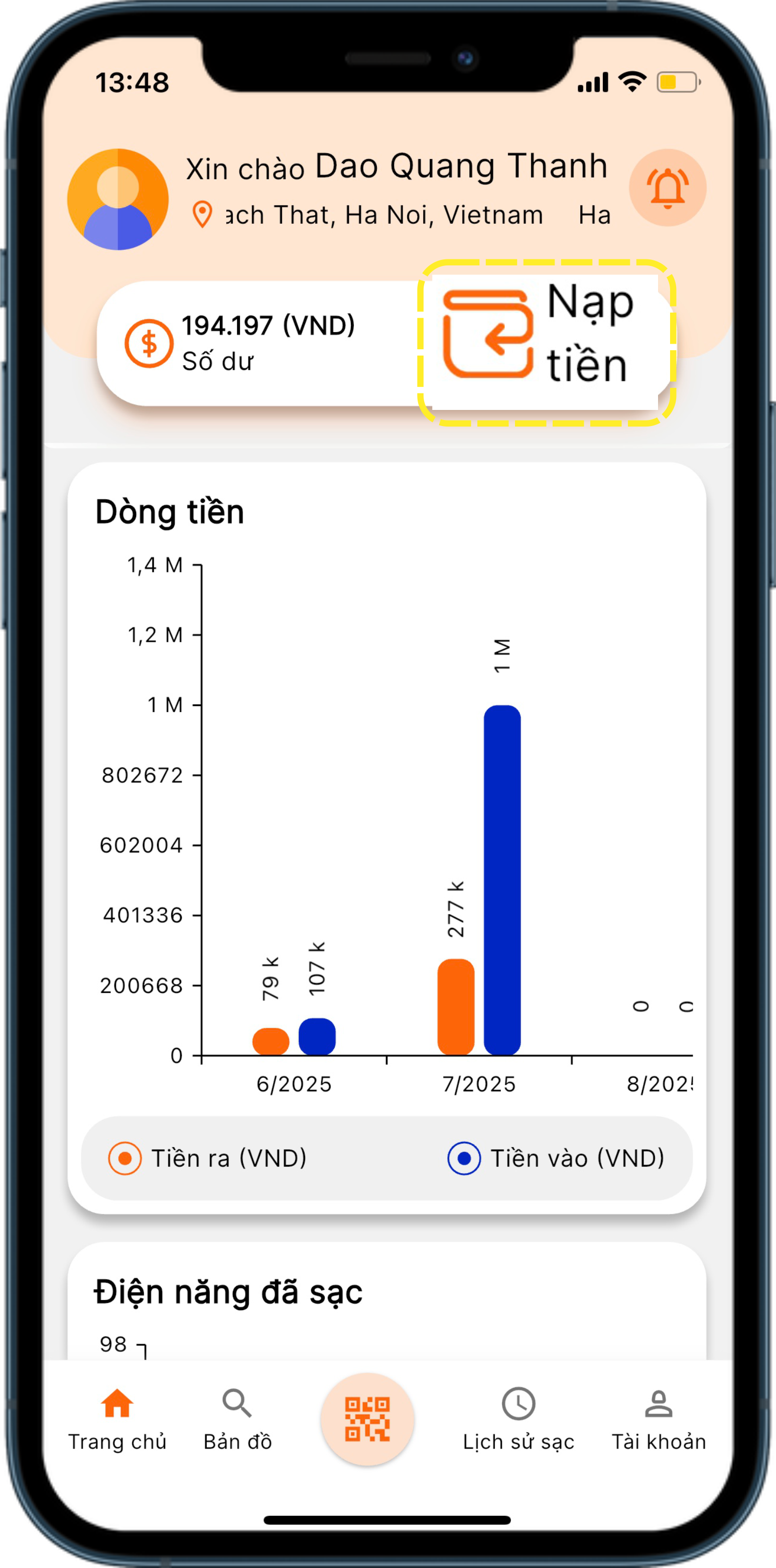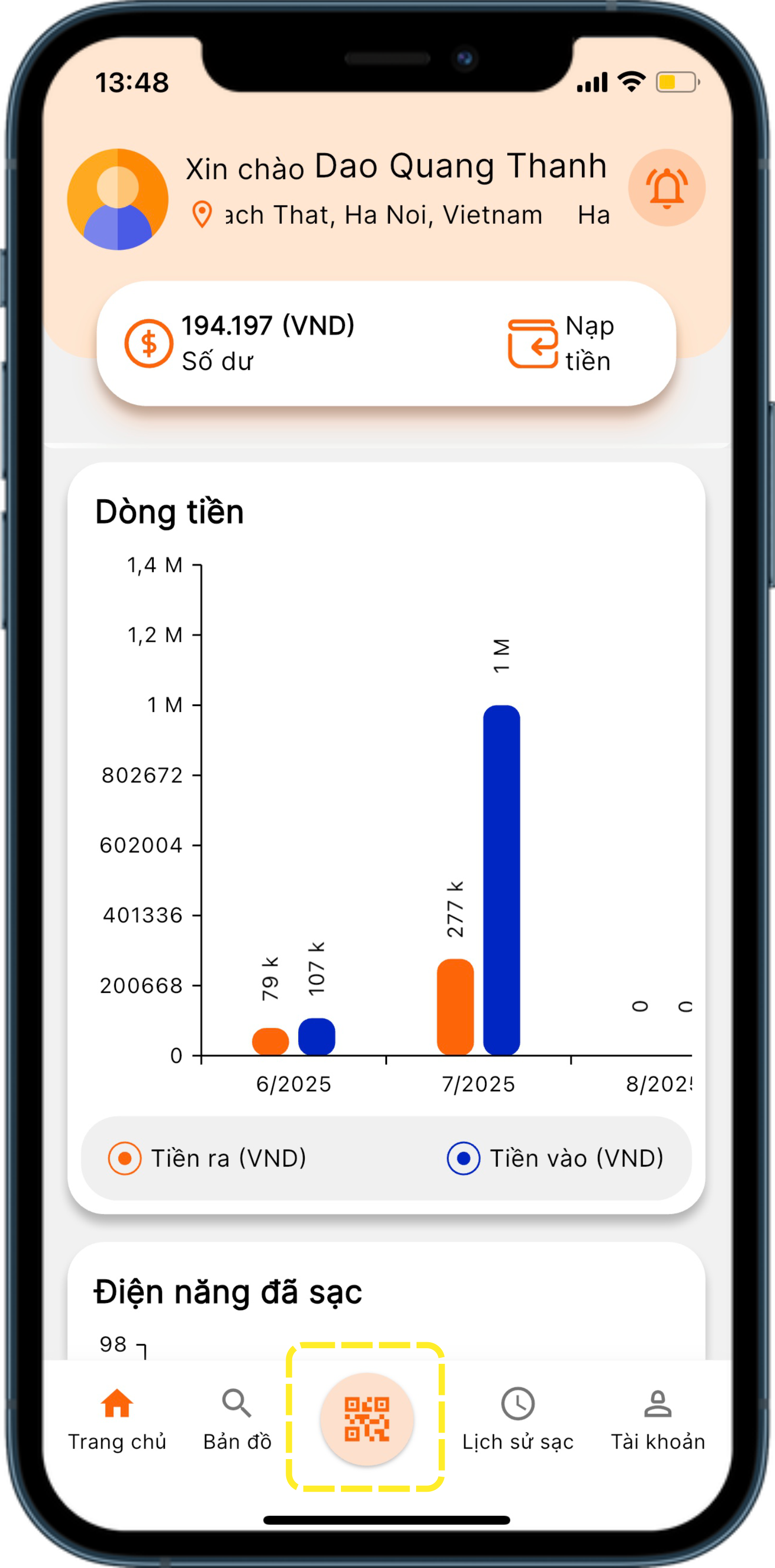 Use your camera or any app with a QR scanning feature to open the download link for the NVCharge application.
