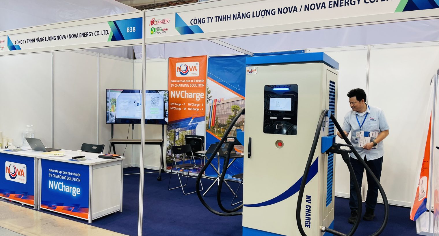 Đến với sự kiện này, NOVA ENERGY đã giới thiệu Giải pháp trạm sạc xe điện NVCharge bao gồm sản phẩm sạc tiêu chuẩn NVCharge S có công suất 60 – 320kW với nhiều tính năng tối ưu, platform quản lý năng lượng thông minh. Giải pháp sạc NVCharge đã thu hút sự chú ý nhờ tốc độ sạc nhanh và khả năng tương thích với mọi dòng xe điện trên thị trường từ nội địa đến nhập khẩu.