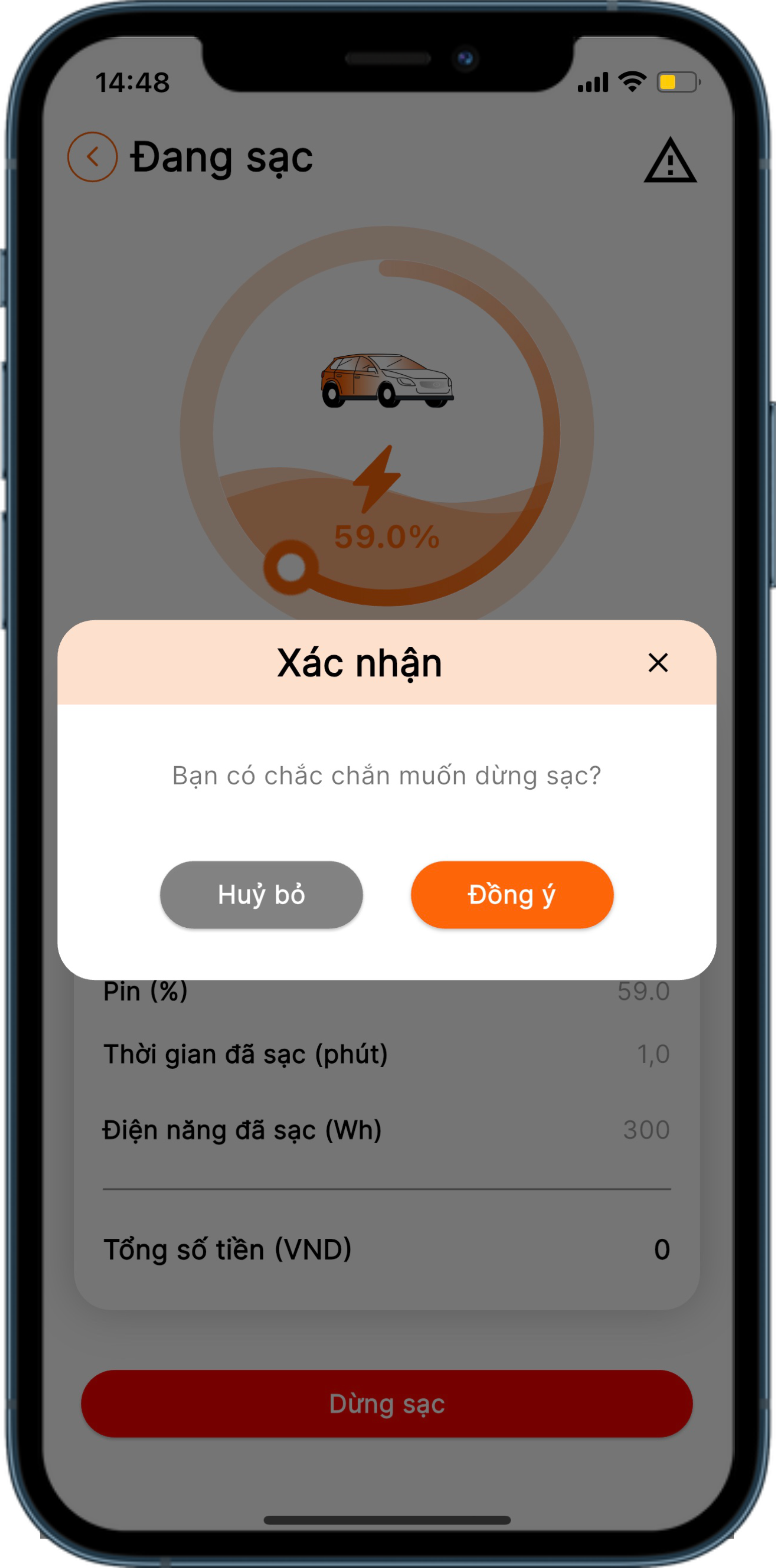 - Nhấn “Dừng sạc” để kết thúc quá trình sạc: