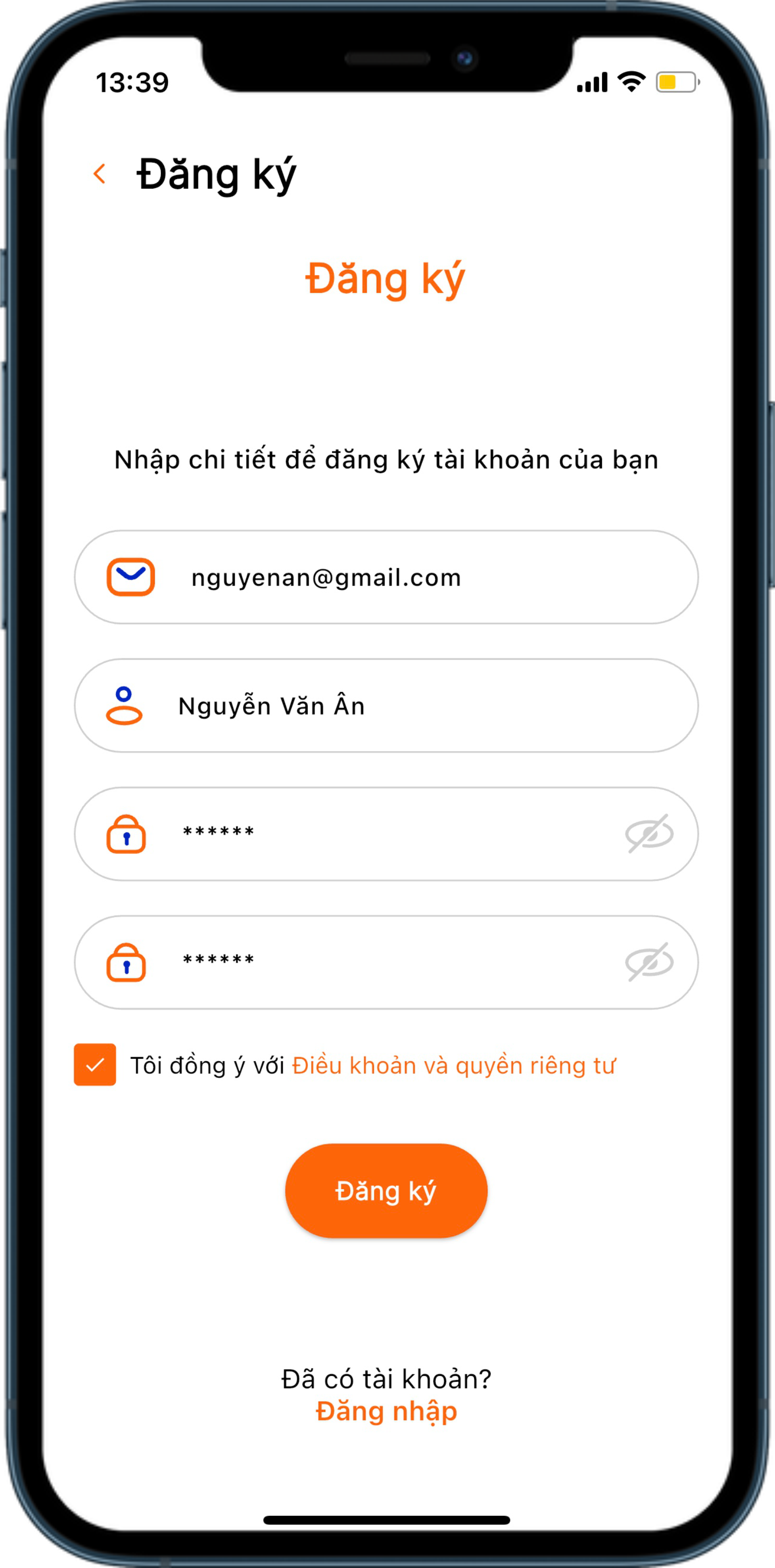 - Nhập số điện thoại di động và các thông tin đăng ký khác, sau đó tích vào “Tôi đồng ý với Điều khoản và quyền riêng tư” và ấn “Đăng ký”.