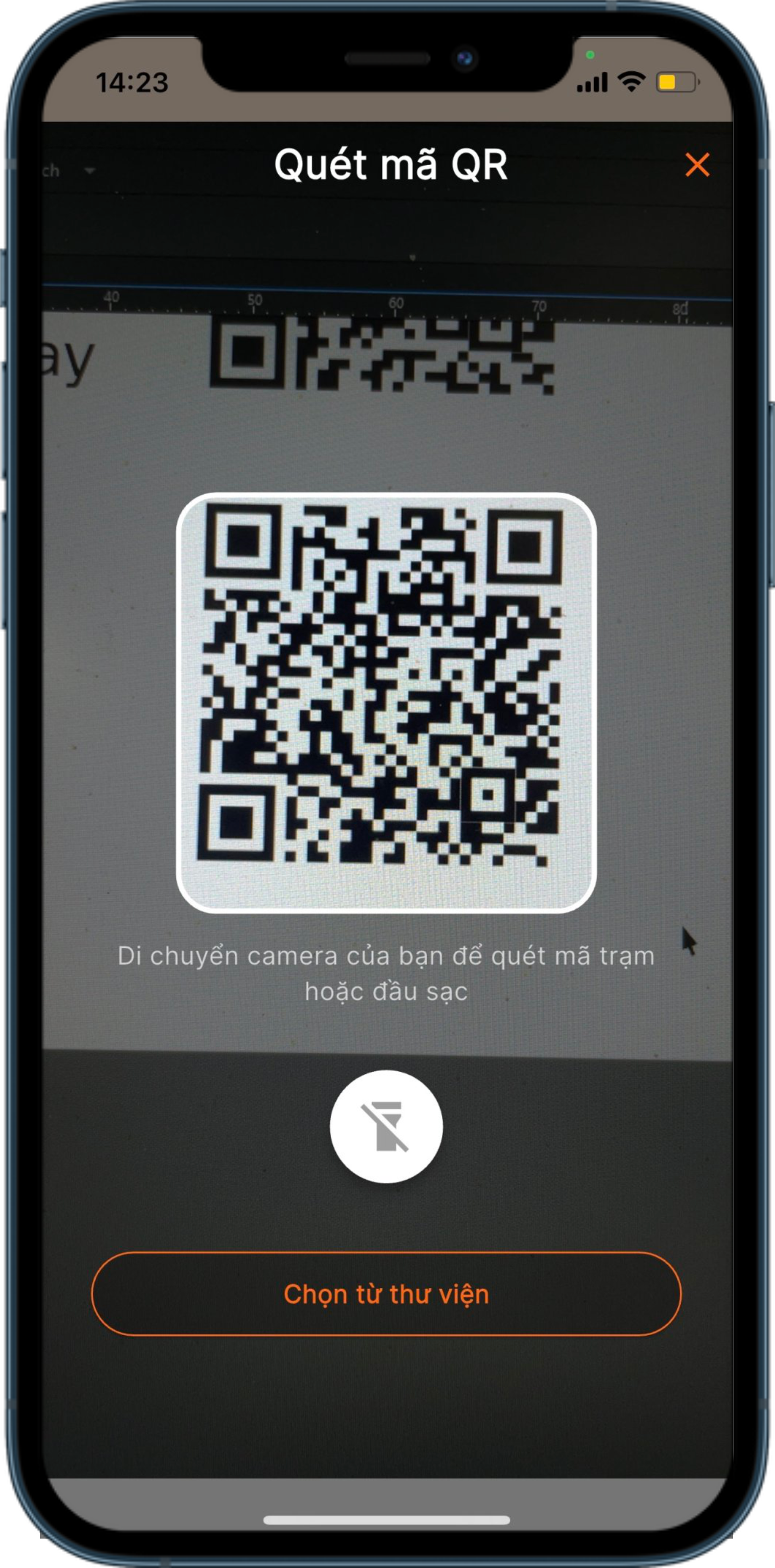 - Tại giao diện chính của NVCharge, nhấn nút quét mã QR để quét mã cổng sạc.
